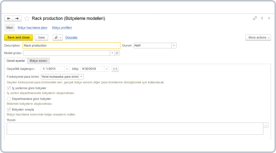 Bu sayfa, 1C:ERP Bütçeleme Alt Sistemini tanıtır. Kurumların finansal planlama ve kontrol süreçlerini tek merkezden yönetmesini sağlayan bu yapı; bütçe oluşturma, finansal senaryoları modelleme ve sonuçları anlık izleme imkânı sunar. Esnek bütçe şablonları, sapma analizleri, senaryo karşılaştırmaları ve operasyonel verilerle tam entegrasyon sayesinde hem stratejik hem de günlük kararlar çok daha sağlıklı alınır.